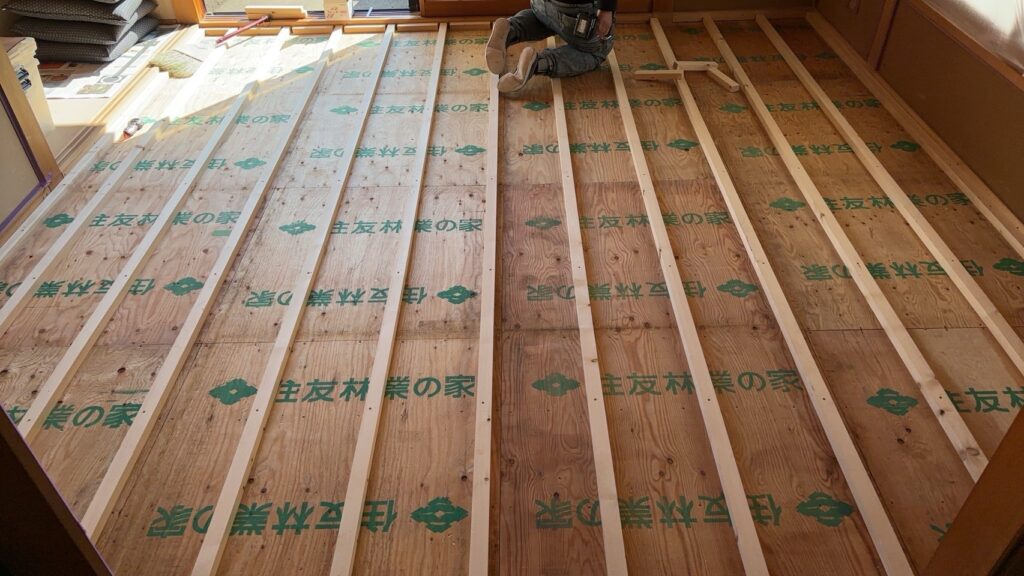 次回は床の仕上げフローリングを貼っている作業をご紹介致しますので、お楽しみに😊